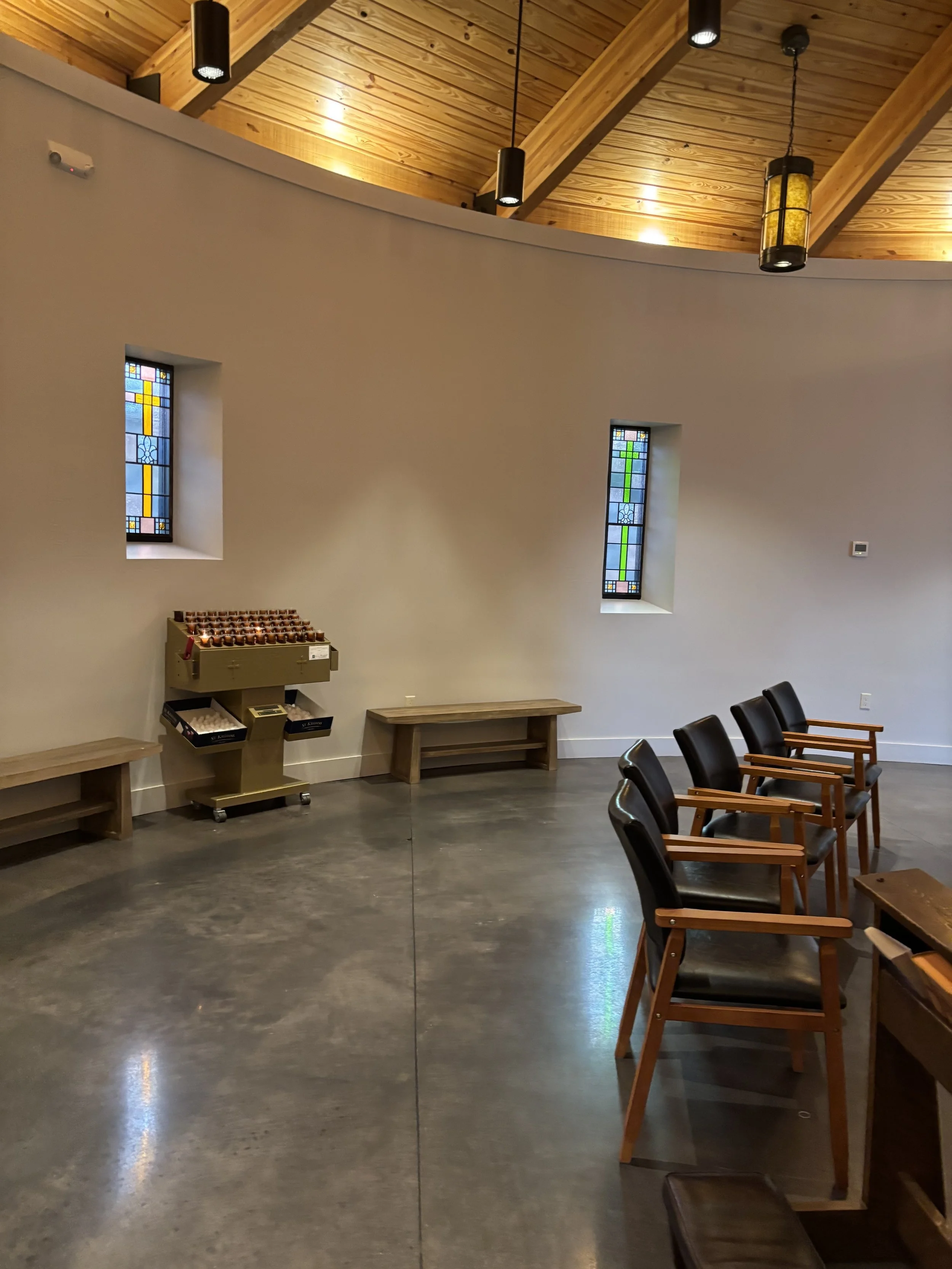 All are welcome to visit the Oratory of St. Joseph, featuring the beautiful mosaic on the Life of Saint Joseph. The mosaic was designed around 100 years ago by Austrian artist Leopold Forstner. The images depict five important times in the life of St. Joseph. The space is simple and allows for a focused time of prayer to God in reflecting on St. Joseph and his “yes” to God. Through St. Joseph, we hear of his obedience to God, “and he did as the angel of the Lord had commanded him.” - Matthew 1:24. God calls us all in a special way to participate in the building of His kingdom here on earth.